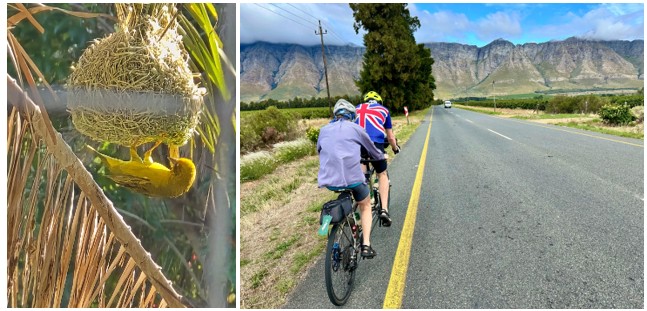 Occasional power outages were experienced, although luckily the timing was not too inconvenient. Many small towns had a local walk showcasing historic buildings. In Montagu we were delighted to find an oasis where we watched enchanted as a weaver bird worked at building his nest!