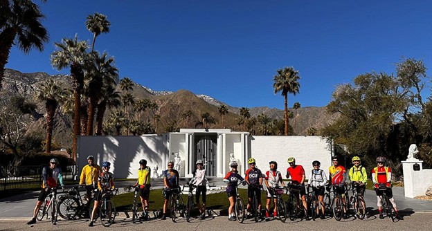 Palm Springs, the epicenter of the mid-century modern (MCM) architectural movement in the United States, was warm and sunny when 20 mid-century BAC members met to spend the last week of February cycling in California’s Coachella Valley. Diana Trager and Sue Bunten, trip leaders, planned a wonderful week of cycling and dining. The well-organized trip featured daily rides starting from base hotels in Palm Springs and La Quinta.